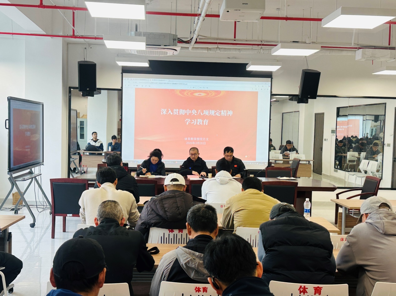 近日,体育教学部召开全体教职工大会,学习传达校党委关于开展深入贯彻中央八项规定精神学习教育的有关要求,并对部门深入贯彻中央八项规定精神学习教育进行动员部署。