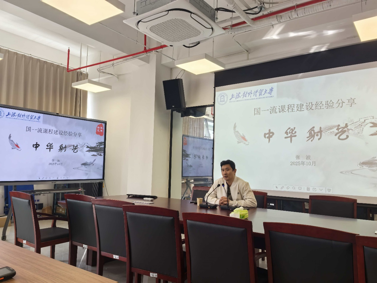 为深化体育教育教学改革,助力一流本科课程建设,10月31日下午,体育教学部在风雨操场301组织举办了“国家一流本科课程《中华射艺》建设经验分享”专题讲座。本次讲座特邀上海对外经贸大学体育健康学院院长张波教授担任主讲人,体育教学部主任张建新主持讲座,部门全体教师参加学习。