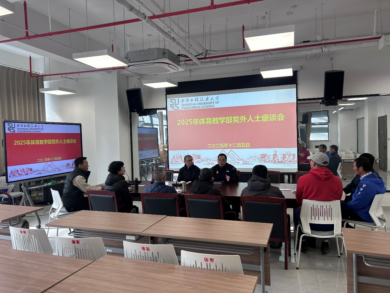 2025年12月5日,体育教学部在风雨操场301会议室召开党外人士座谈会。部门党政班子成员、各民主党派和无党派人士参加会议。会议由体育教学部党支部书记李扬主持。