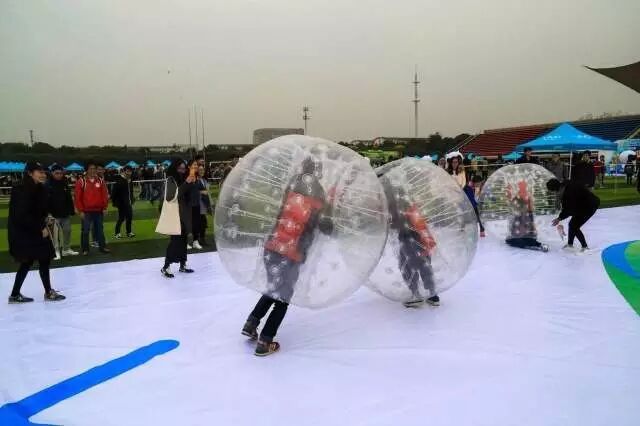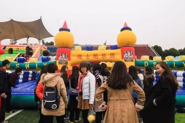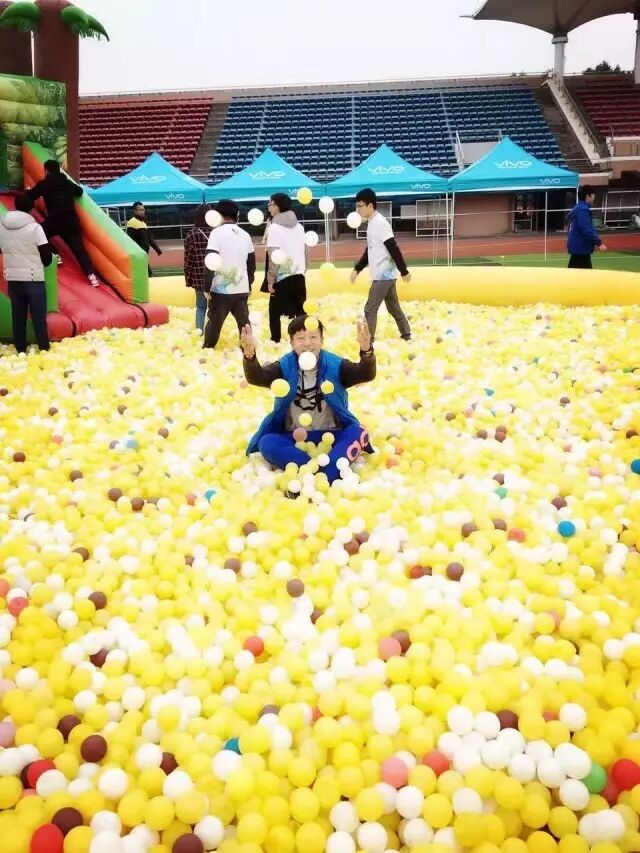 我曾经跨过山和大海, 却跨不过人山人海, 瞧瞧!这队伍,这人气, 光是排队都感受到了现场热烈的气氛, 让我们跟随小编的脚步去活动场地看一看吧! 自古佳人配英雄, 魅力难挡的校啦啦队宝贝们也为这次比赛加油助威来了, 激情四射的开场, 带动了现场的气氛, 小编也是看的口水直流哇, 大家是不是也光顾着欣赏而忘了接下来的活动了呀! 当知识撞上体育会擦出怎样的火花呢? 看看接下来的活动你们就明白了, 这是一场集团队合作、知识问答、体育锻炼与一体的项目。 过程可谓是惊心动魄, 不信的话,你们看图。 小时候是否玩过海洋球? 是不是很怀念? 我们把海洋球搬过来啦! 看着这一堆球, 小编特别想往里面钻。 不光有同学,还有老师哦。 让我们一起回到小时候吧! 足球可是三大球之一, 国民踢球也是成为了时下的潮流, 可你有见过这样的足球吗? 把你和球融合在一体成为了与别人相对抗的足球,莫非这就是传说中的人球合一?! 每个小孩子的心中都曾有一颗贵族梦, 幻想自己是公主王子, 拥有美丽的城堡, 随着年龄的长大, 成熟带走了这份稚气, 今天就让大家重拾这份幻想 魔幻城堡我们来了! 不知道你们有没有羡慕过明星走红地毯后, 在签名墙留下自己签名的画面, 反正小编是很羡慕, 总感觉那是一种荣耀的象征, 活动结束之后, 同学们也是在签名墙上留下了自己的姓名, 想必每一个参加完活动的同学都是充满了自豪之情, 这是对自己的肯定,对同伴的肯定 , 真棒!同学们。 活动真是丰富多彩呀! 试着放下手机,